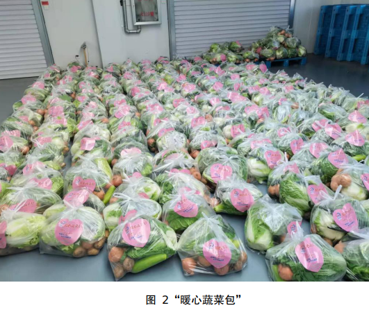 蔬菜包每袋重约10斤,内含大白菜、土豆、黄瓜、蒜薹、芸豆等七八种蔬菜,足够一户居民吃1周。为保障配送安全,“蔬菜包”配送至各街道后,经过街道严格消杀后,再由各社区(村)分发到户。