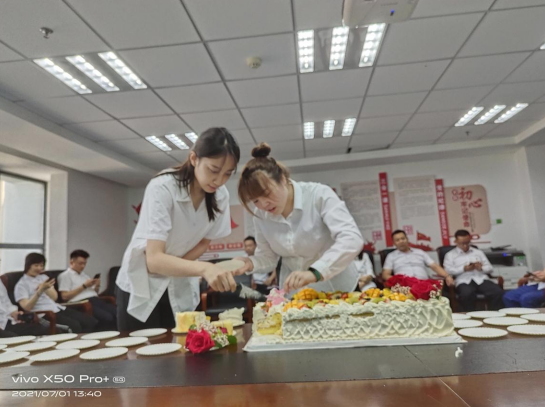 七是共享一份“政治生日”蛋糕。为让党员们集体度过一个特别、温馨、难忘的政治生日,党支部精心准备了印有党旗和100年字样的“生日蛋糕”,以此来激励党员永远铭记共产党员的光荣称号,牢记党的宗旨,增强党性修养,以共产党员的实际行动勇当时代先锋。