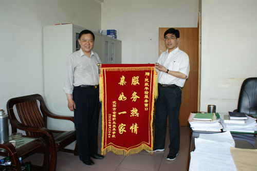 5月27日,沈阳市金晖职业技术学校送来锦旗,感谢市民政局在民办非企业单位年检过程中提供周到热情的服务。今年4月,市民政局民间组织管理局创新年检方式,以职业培训类民办学校为试点,与其业务主管单位市人社局合署办公,上门年检,提供“一站式”服务,受到广泛赞誉和欢迎。