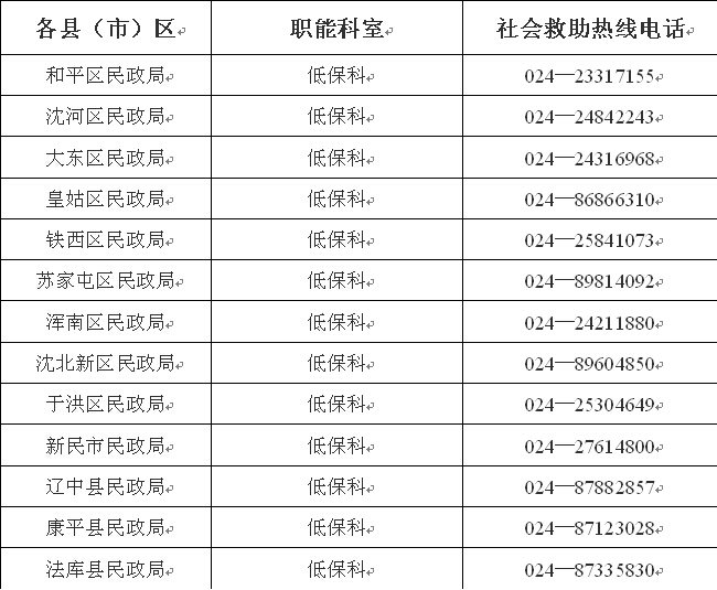 全市社会救助热线电话(2014/09/11)