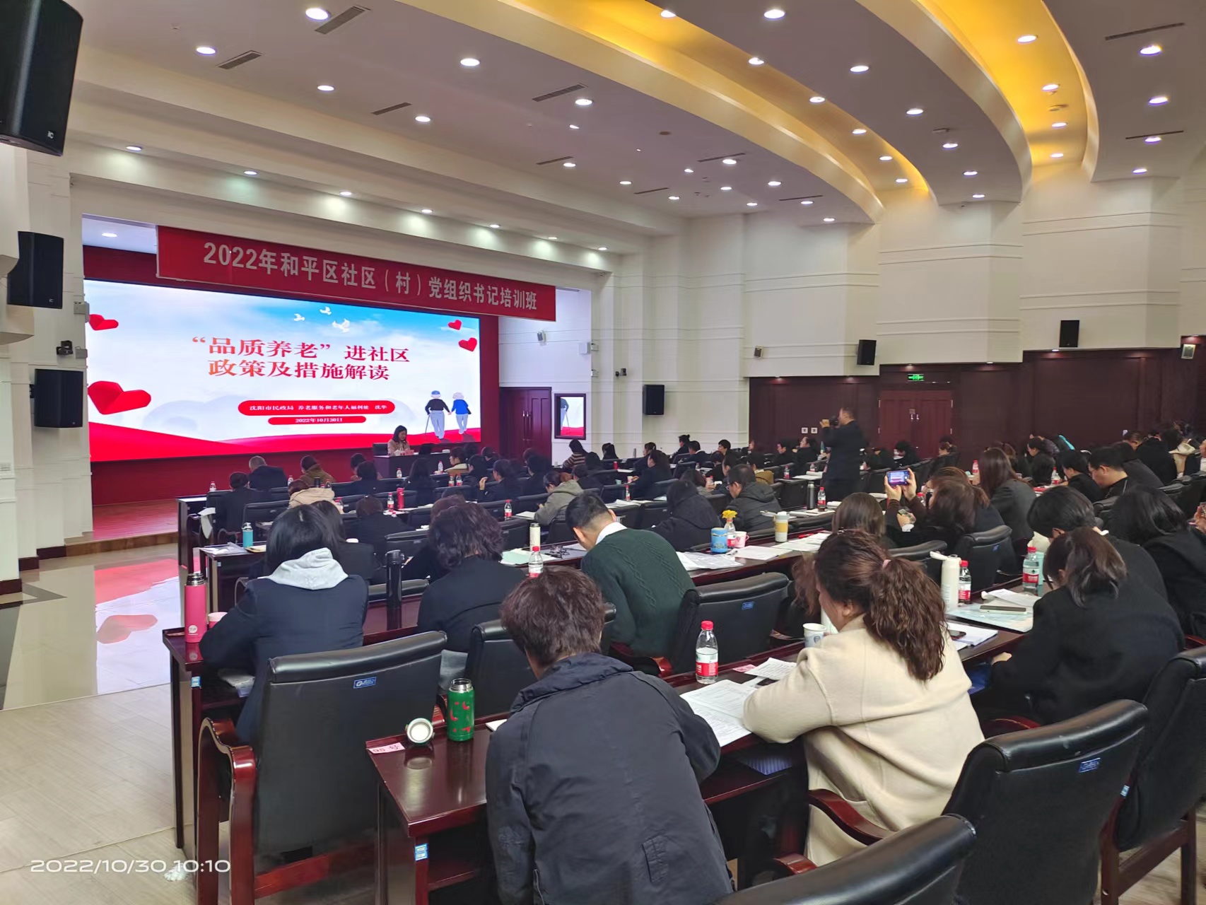 为切实提升社区党组织书记履职能力、服务能力和业务能力,10月30日,和平区举办全区社区党组织书记培训会,特邀市民政局养老服务和老年人福利处相关负责同志围绕“品质养老”进社区工作进行政策解读。和平区民政局组织相关业务骨干参会学习。