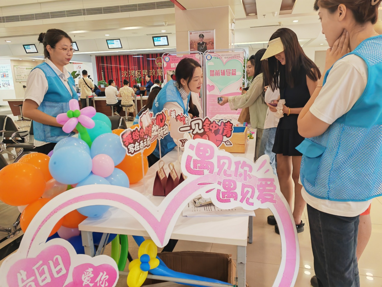 “七夕”是中国传统佳期,许多年轻人赋予它爱情、永恒、浪漫和幸福的内涵,还会选择这一天为自己办理结婚登记。沈河区民政局婚姻登记处顺应新人要求,全力以赴保障婚姻登记顺畅进行,并为他们送上自己满满的祝福和美好的祝愿。
