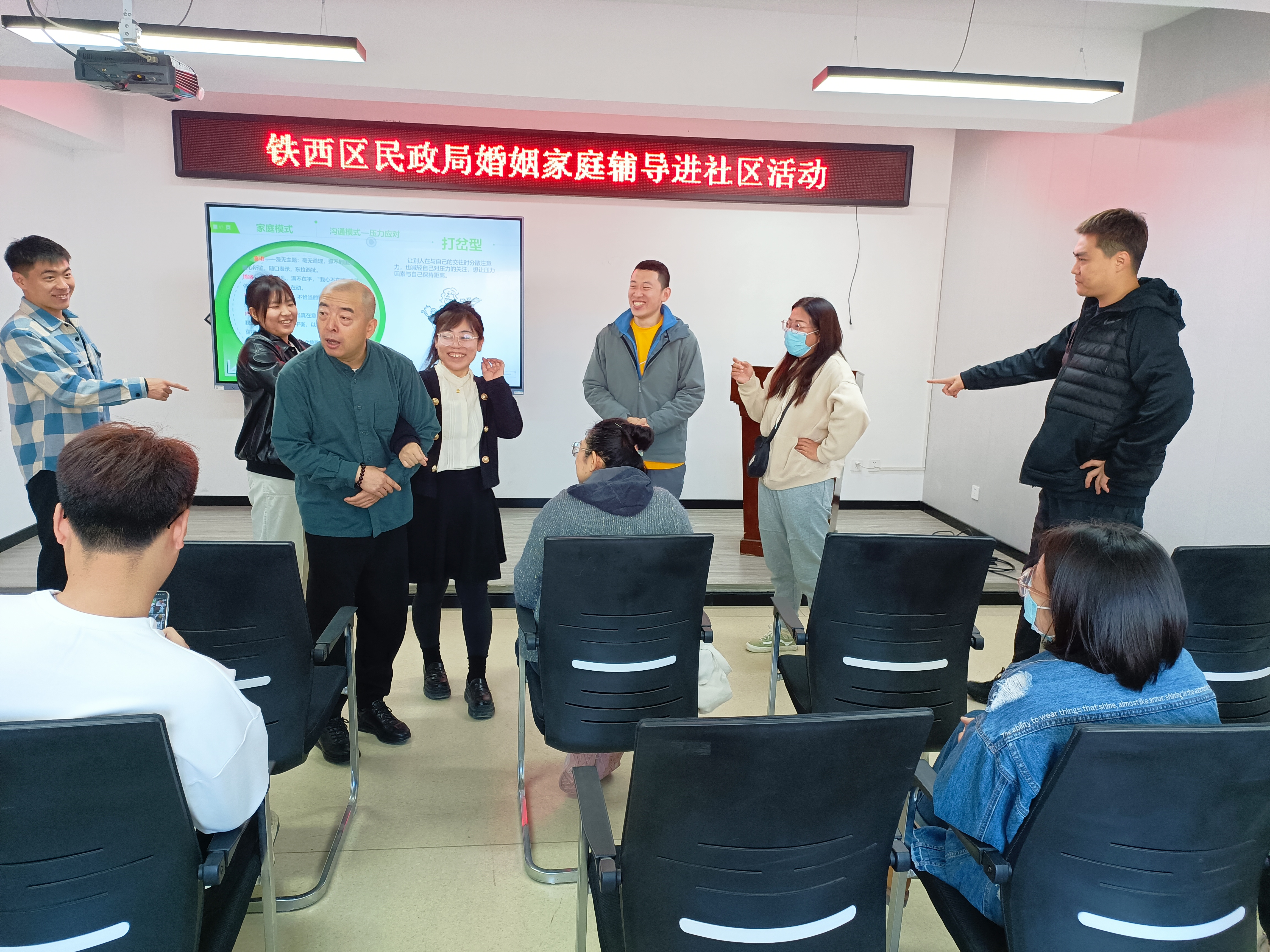 为引导社区居民注重家庭关系,积极承担好婚姻家庭中的责任和义务,10月17日,由市民政局、铁西区民政局、沈阳幸福力社会工作服务中心联合开展的“婚姻家庭辅导进社区”活动走进了铁西区启工街道重工新村社区,为辖区居民上了一次生动鲜活的幸福家庭课。