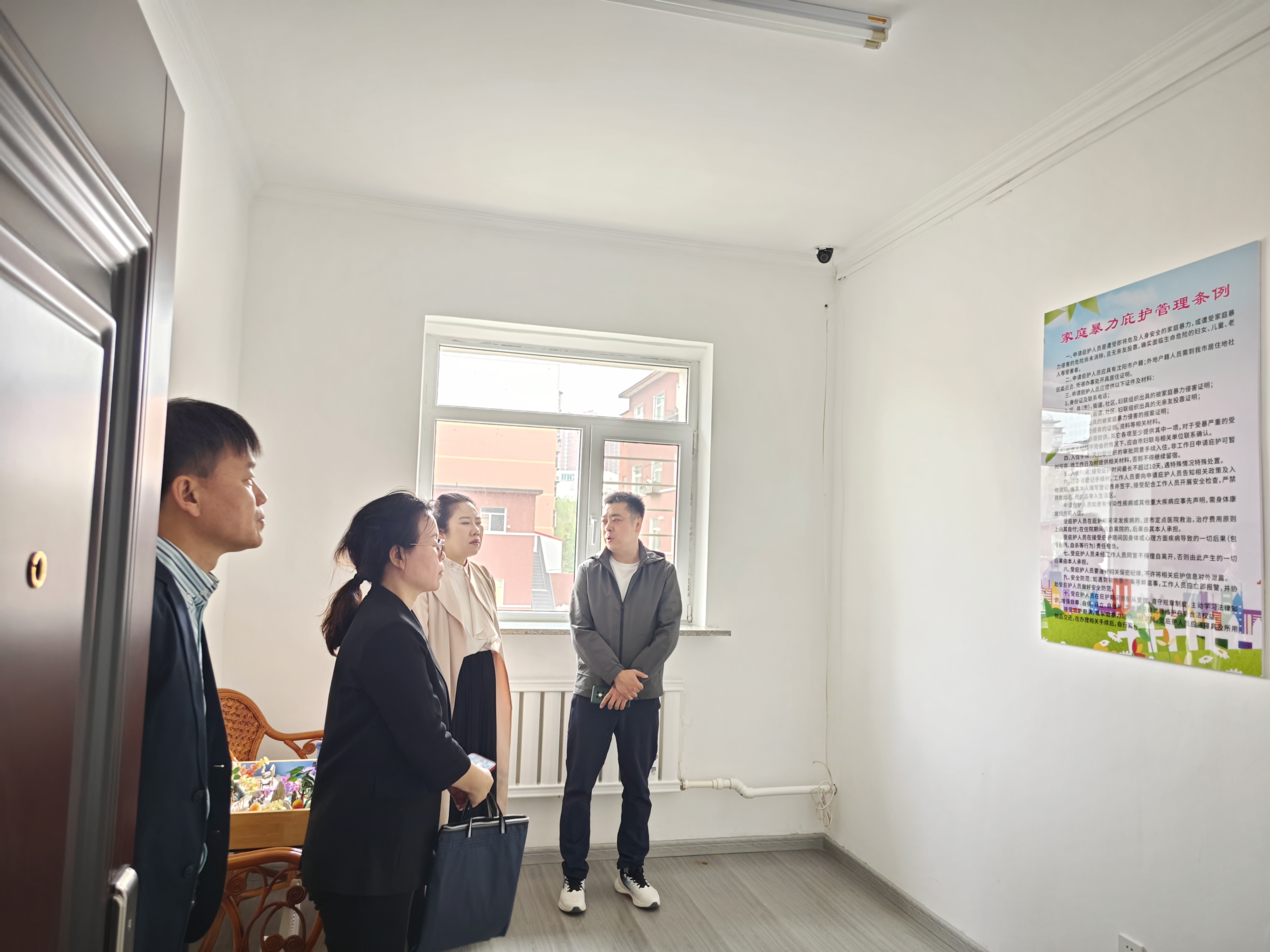 5月10日,市妇联副主席张巍及市妇联妇女权益部部长张继红一行,莅临沈阳市救助管理站,深入调研家庭暴力庇护业务的具体开展情况。市民政局社会事务处处长陆军全程陪同。