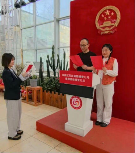 同时,浑南区民政局植物园婚姻登记点在花海中为新人提供温馨浪漫、便捷高效的婚姻登记体验。新人们共同许下相守一生的承诺,在花香与祝福中定格幸福瞬间,以文明简约的方式开启人生新篇章。