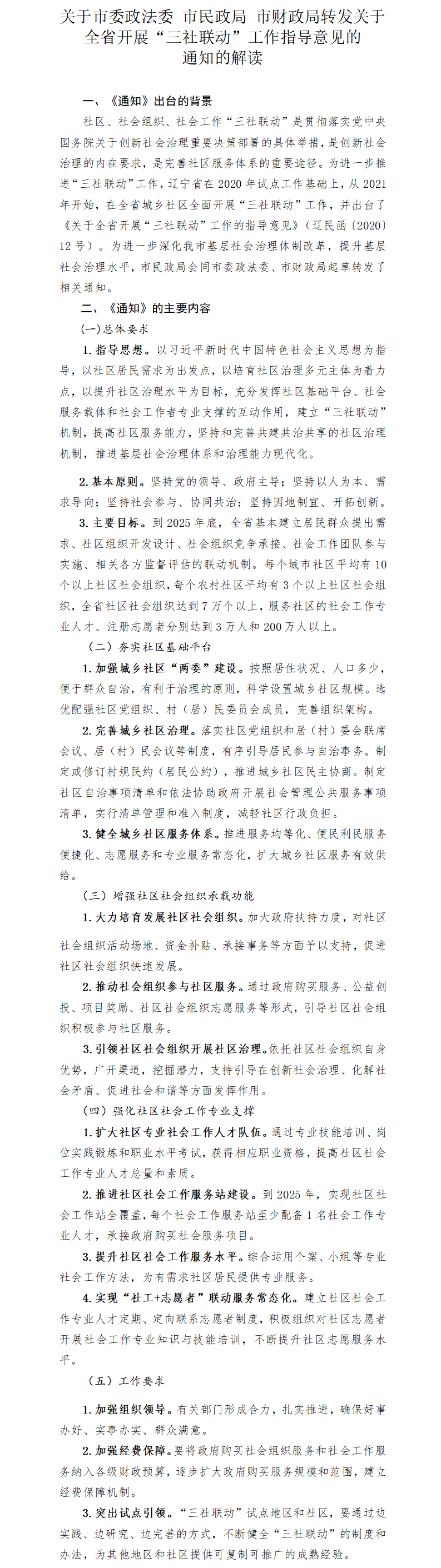 市委政法委 市民政局 市财政局转发关于全省开展“三社联动”工作指导意见的通知——政策解读