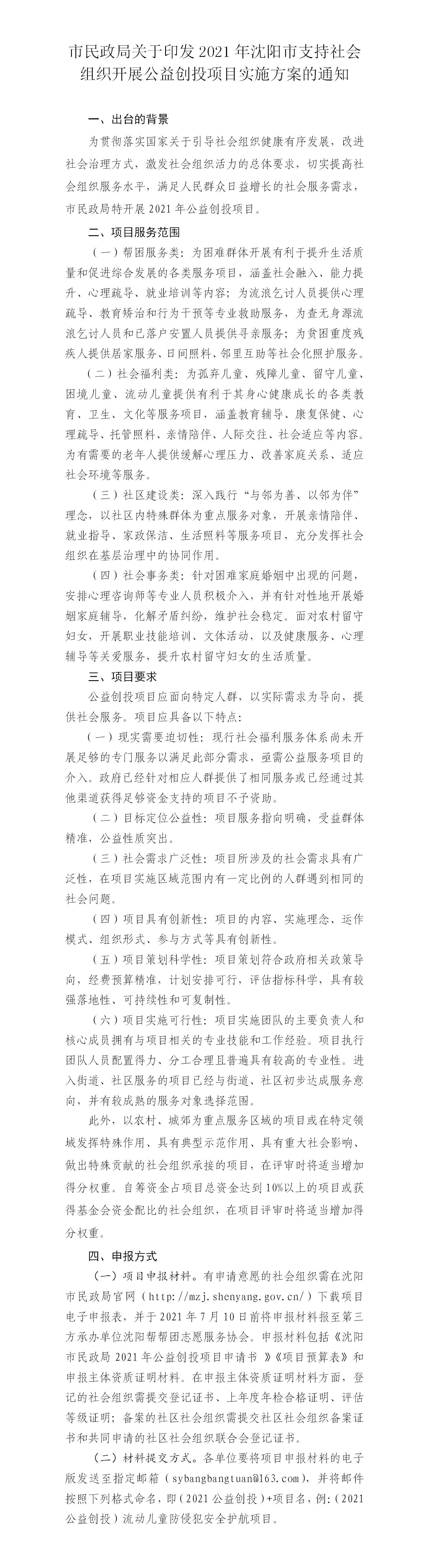 沈民发〔2021〕16号市民政局关于印发2021年沈阳市支持社会组织开展公益创投项目实施方案的通知——政策解读