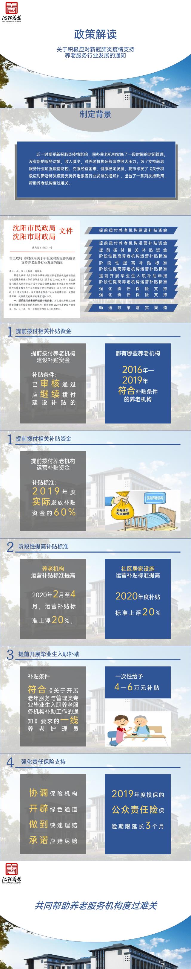 四是强化责任保险支持。积极协调养老服务机构综合责任保险承保机构,对疫情防控期间养老服务机构及老年人理赔开辟绿色通道,快速理赔,应赔尽赔。2019年度投保的公众责任险在原保险期限上延长3个月。