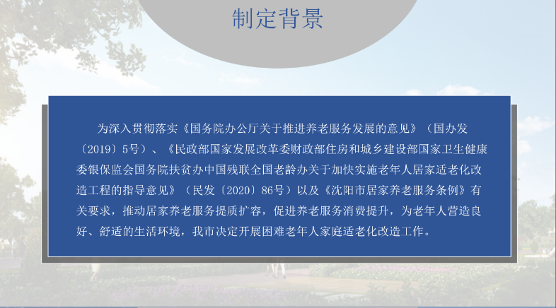 沈民发〔2020〕17号市民政局 市发展改革委 市财政局 市自然资源局 市房产局 市农业农村局 市卫生健康委 市残联关于印发2020年沈阳市困难老年人家庭适老化改造工作实施方案的通知——图文解读