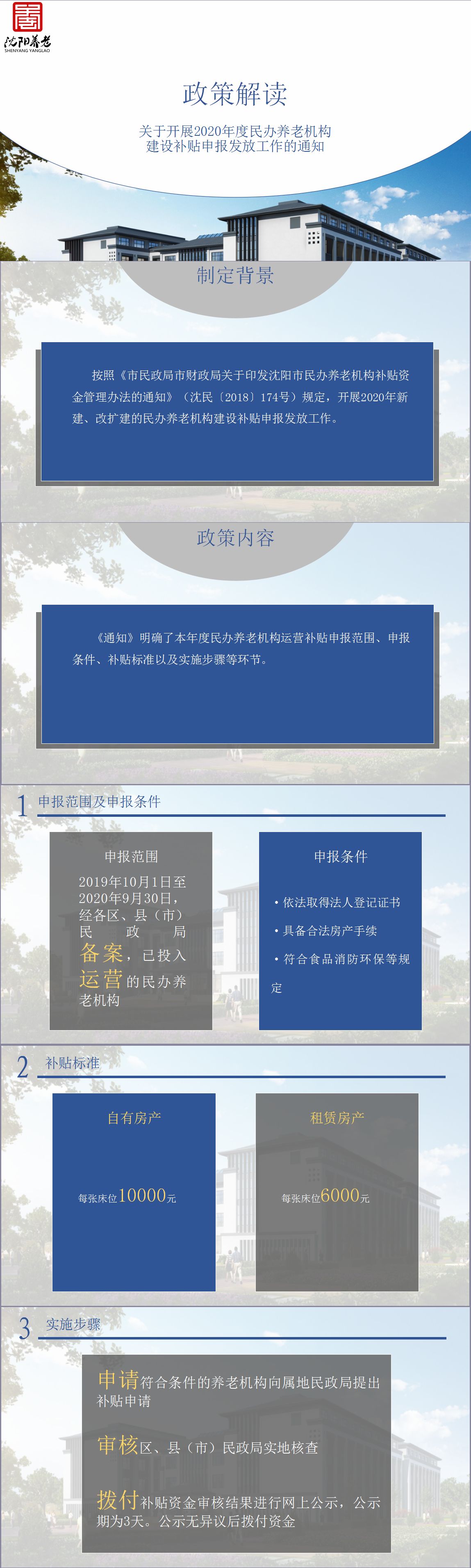 沈民办发〔2020〕22号市民政局关于开展2020年度民办养老机构建设补贴申报发放工作的通知-政策解读