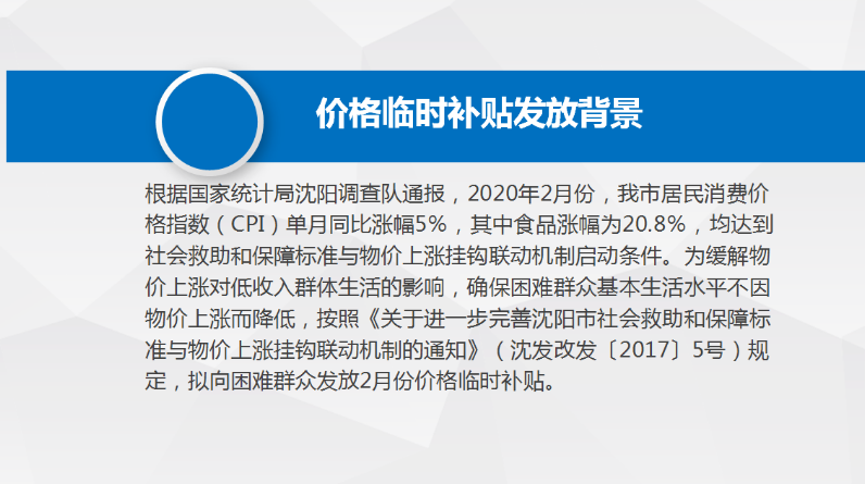 沈民〔2020〕22号 市民政局 市财政局关于为困难群体发放2月份价格临时补贴的通知——政策解读