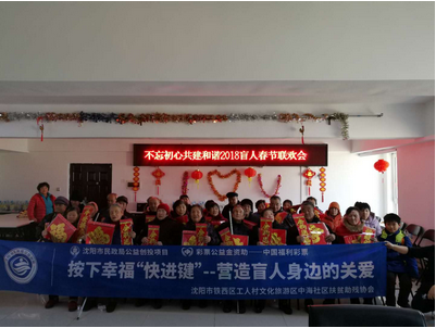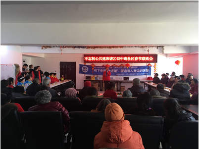 为喜迎新春,中海社区扶贫助残协会召开盲残老人“不忘初心共建和谐”2018春节联欢会,让盲残老人欢聚一堂共渡新春佳节,同时也借此联欢会让盲残老人、志愿者与社区居民在一起活动增进邻里之间的交流,使盲残老人真正的融入到社区这个大家庭。