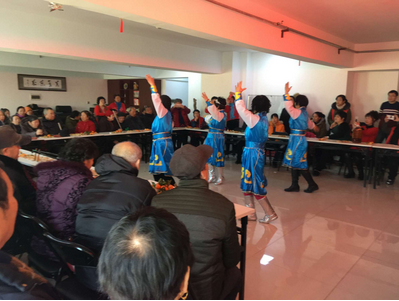 社区舞蹈队的志愿者也参与到了本次联欢会中来为盲残叔叔阿姨们表演了舞蹈《站在草原望北京》