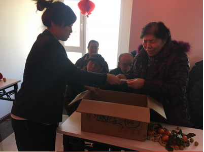 在联欢会结束之际中海社区扶贫助残协会为盲残老人准备了“福”字与对联,盲残老人们的脸上都洋溢着幸福的笑脸。