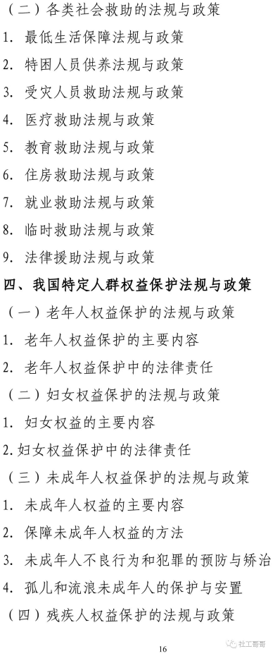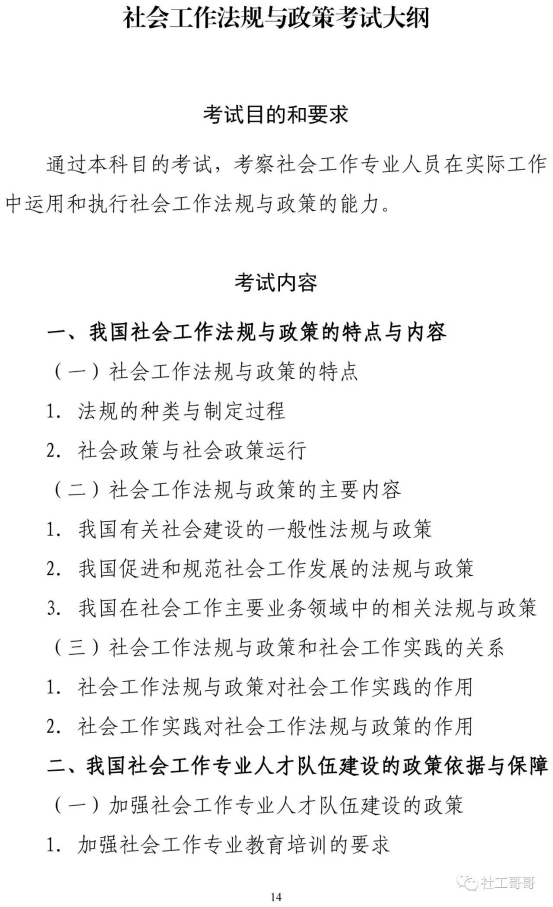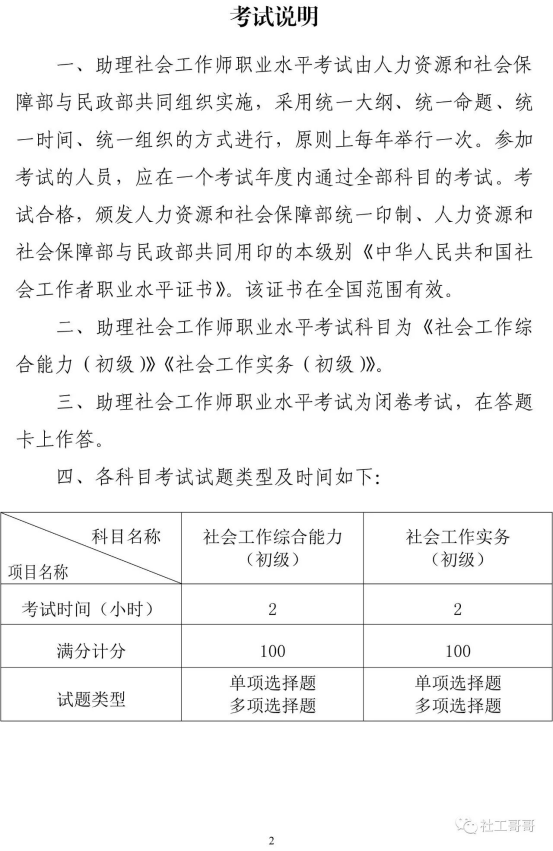 为更好反映新时代中国特色社会工作发展要求,体现我国社会工作发展实际,科学评价社会工作专业人才,社会工作者职业水平评价专家委员会对助理社会工作师、社会工作师职业水平考试大纲进行了修订并经人力资源和社会保障部审定通过,现予发布(见附件)。